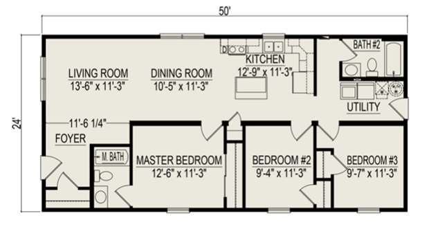 Upper Manhattan | Size: 1200 | Bed: 3 | Bath: 2 | 24×50 | Home Only $132,000